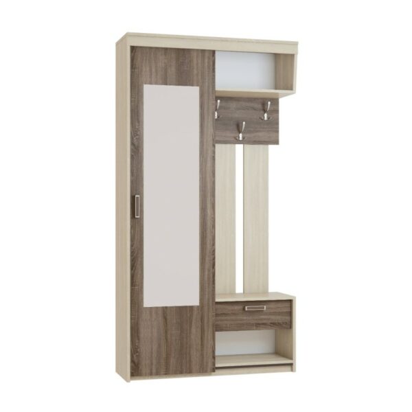 Прихожая «Розолина» несомненно порадует хозяев и вызовет только приятные эмоции. Свежая и привлекательная мебель выполнена в современном стиле и интересной вариации. Гладкая поверхность и качественные материалы будут радовать глаз в течение длительного времени. Все элементы составляют единый стиль гарнитура, сочетаются друг с другом и дарят эффект целостности и фактуры. Оттенки: Анкор, Венге цаво, Дуб белфорт Материал корпуса: ЛДСП Материал фасада: ЛДСП Размеры: С зеркалом и шкафом (ВxШxГ 2016x1560x354 мм); С зеркалом (ВxШxГ 2016x996x354 мм); С шкафом (ВxШxГ 2100x1148x374 мм)