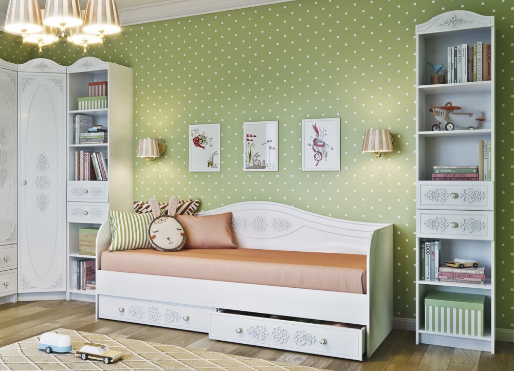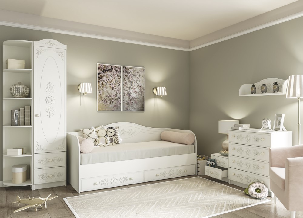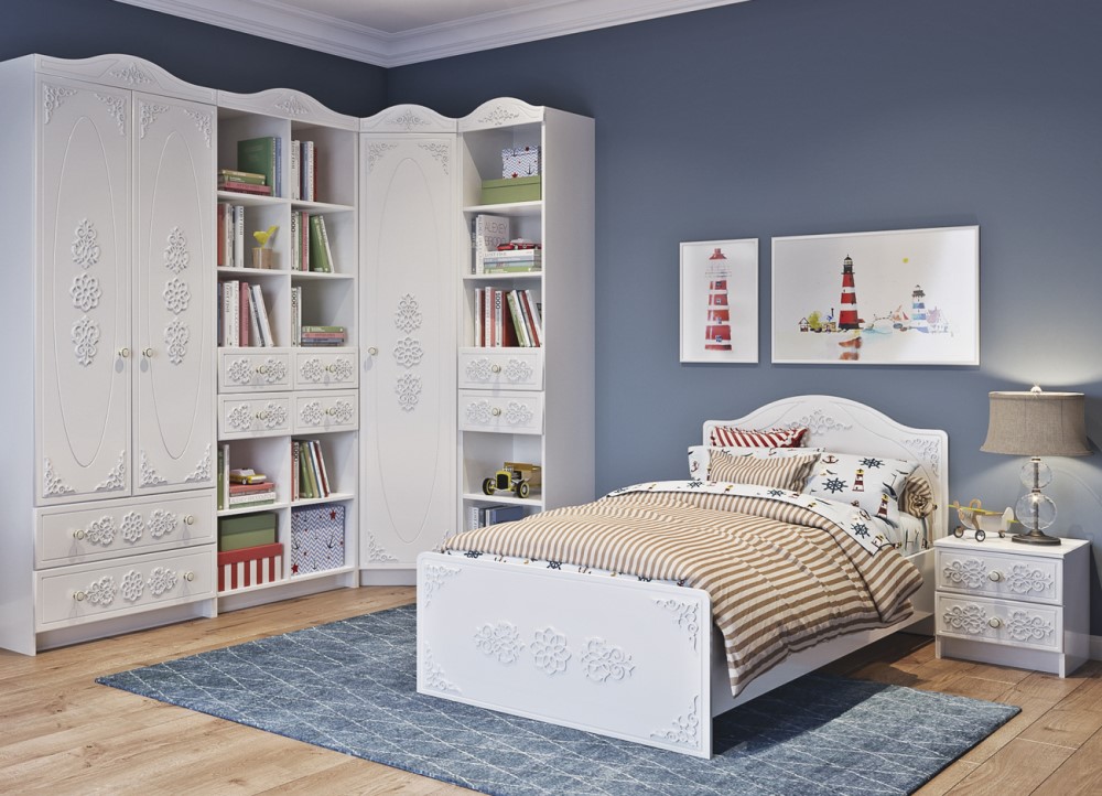 Современная детская модульная система Ki-Ki – это универсальный «мебельный конструктор», предназначенный для комнаты ребенка. Модульная система имеет единый стиль с преобладающим белым оттенком. На фасадных панелях мебели предусмотрена креативная резная отделка, дополняющая стиль модульной системы. Вся мебель изготовлена из экологически чистых материалов древесины, использованы безопасные материалы и покрытия.