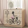 Классический комод с четырьмя ящиками. Комод входит в модульную линейку детской «Париж». Прекрасно совместим с другой мебелью этой детской. Фасад комода украшен УФ печатью и матовыми ручками квадратной формы. Столешница комода украшена карнизом. Это не даст мелочам упасть за комод.