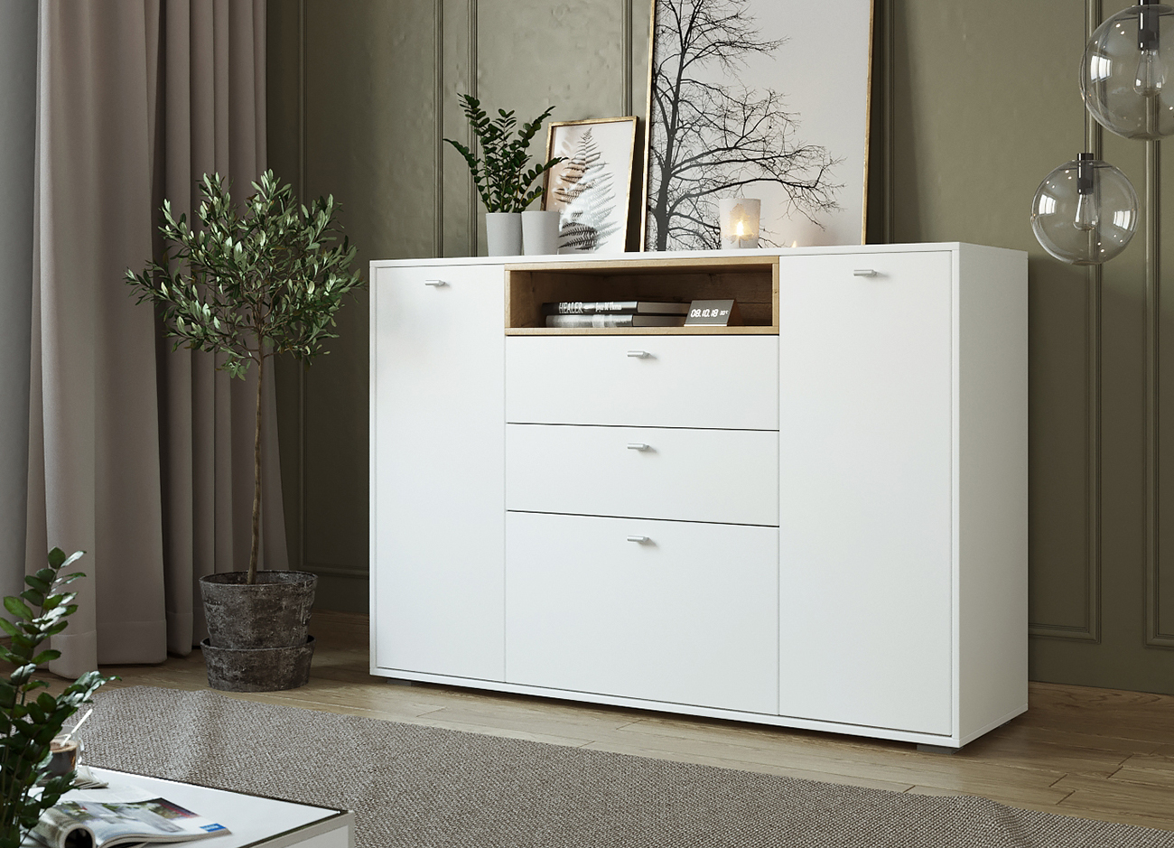 Стильный и привлекательный комод «Ланс» станет отличным решением для помещений и квартир. Комод «Ланс» поистине уникален, он сочетает в себе спокойствие и нежность, комфорт и удобство, удовольствие и приятные эмоции. Интерьер благодаря комоду станет гармоничным и интересным. Насыщенные оттенки белого и дуба бунратти, стильные детали и гладкие фасады не могут не радовать новых владельцев.