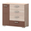 Серия мебели «Лимбо» выполнена в универсальных коричневых тонах, являя собой пример для создания современного и стильного интерьера. Преобладание светлых тонов не утяжеляет пространство, визуально делает комнату светлее. Комод «Лимбо 1» может быть куплен как часть модульной детской, или как отдельный элемент интерьера любой комнаты. Корпус мебели выполнен из ЛДСП, значит, вы можете не беспокоиться о возникновении деформации. Комод вместителен: четыре выдвижных ящика и боковая секция с дверцей позволят разложить внутри много вещей.