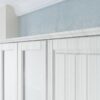 Фасады имеют резную отделку в форме прямоугольных контуров, которые придают им элегантность и свежесть. Все кромки облицовки закрыты пленкой ПВХ, защищающей ламинированную поверхность. Для сборки модулей использовался качественный материал, который позволяет недорогому кухонному гарнитуру сохранить первозданный внешний вид на протяжении длительного периода времени.