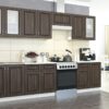 Темные фасады в сочетании с белыми деталями корпуса внесут в обстановку кухни благородство и элегантность. Отделанные стеклянными вставками верхние навесные шкафы сделают верхнюю линию кухонного комплекта более легкой и воздушной.