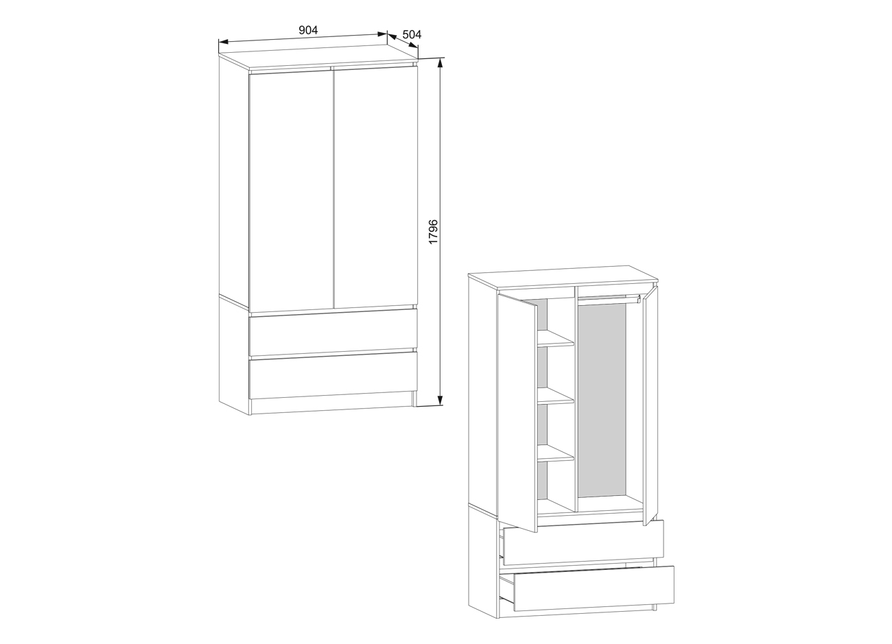 Высота: 1796 мм.