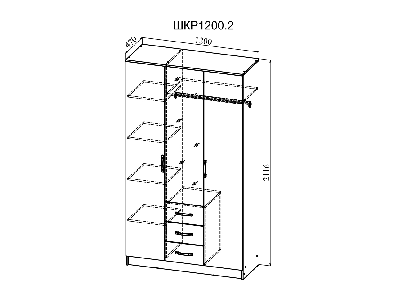 Высота: 2116 мм / Ширина: 1200 мм / Глубина: 470 мм