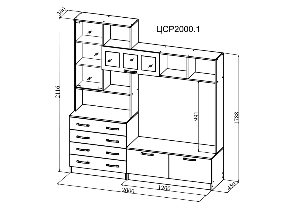 Высота: 2116 мм / Ширина: 2000 мм / Глубина: 450 мм