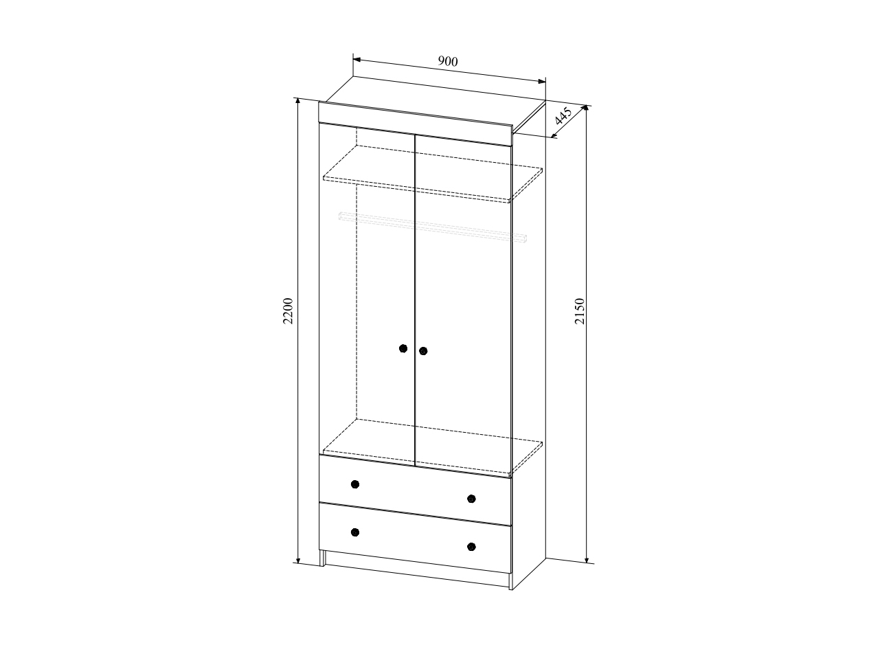 ВхШхГ 900х970х2032мм