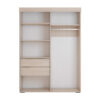 2х-дверный шкаф-купе «Лимбо 1» — функциональное решение для небольшого пространства, ведь у шкафа нет распашных дверей, что позволит поставить его даже на узкий участок комнаты. Шкаф-купе выполнен из ЛДСП, а значит, можно не бояться деформаций изделия в процессе использования. Двухдверный шкаф-купе оснащен надежным роликовым механизмом открывания дверей, вся фурнитура – заводского изготовления, долговечная и прочная. У системы хранения две секции: со штангой для вешалок, куда поместятся платья, рубашки, пиджаки и брючные костюмы, и секция с четырьмя полками и двумя выдвижными ящиками, где удобно будет рассортировать одежду в сложенном виде, белье, аксессуары и другие вещи. Дверца декорирована интересным и современным принтом. Купить шкаф-купе можно в светло-коричневом универсальном цвете, что позволит без труда вписать шкаф в интерьер, выполненный в любых оттенках.