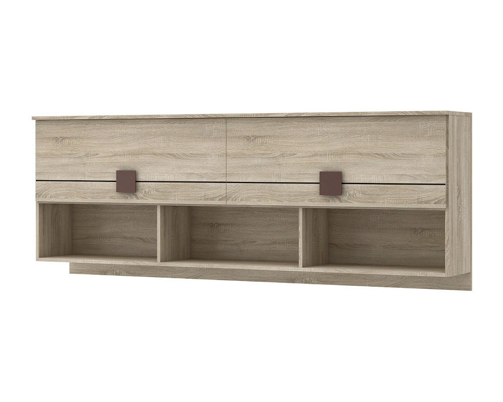 Мини-шкаф полка «Диско» изготавливается в светло-коричневом цвете из ЛДСП. Полка может использоваться как самостоятельный элемент интерьера любой комнаты (гостиная, спальня, прихожая), или стать частью интерьера детской комнаты серии «Диско». Шкаф-полка достаточно вместительна: две больших распашных секции наверху и три полочки без дверцы внизу позволят разместить немалое количество вещей. Аскетичный дизайн полки успешно дополняет темно-коричневая фурнитура в виде квадратов.