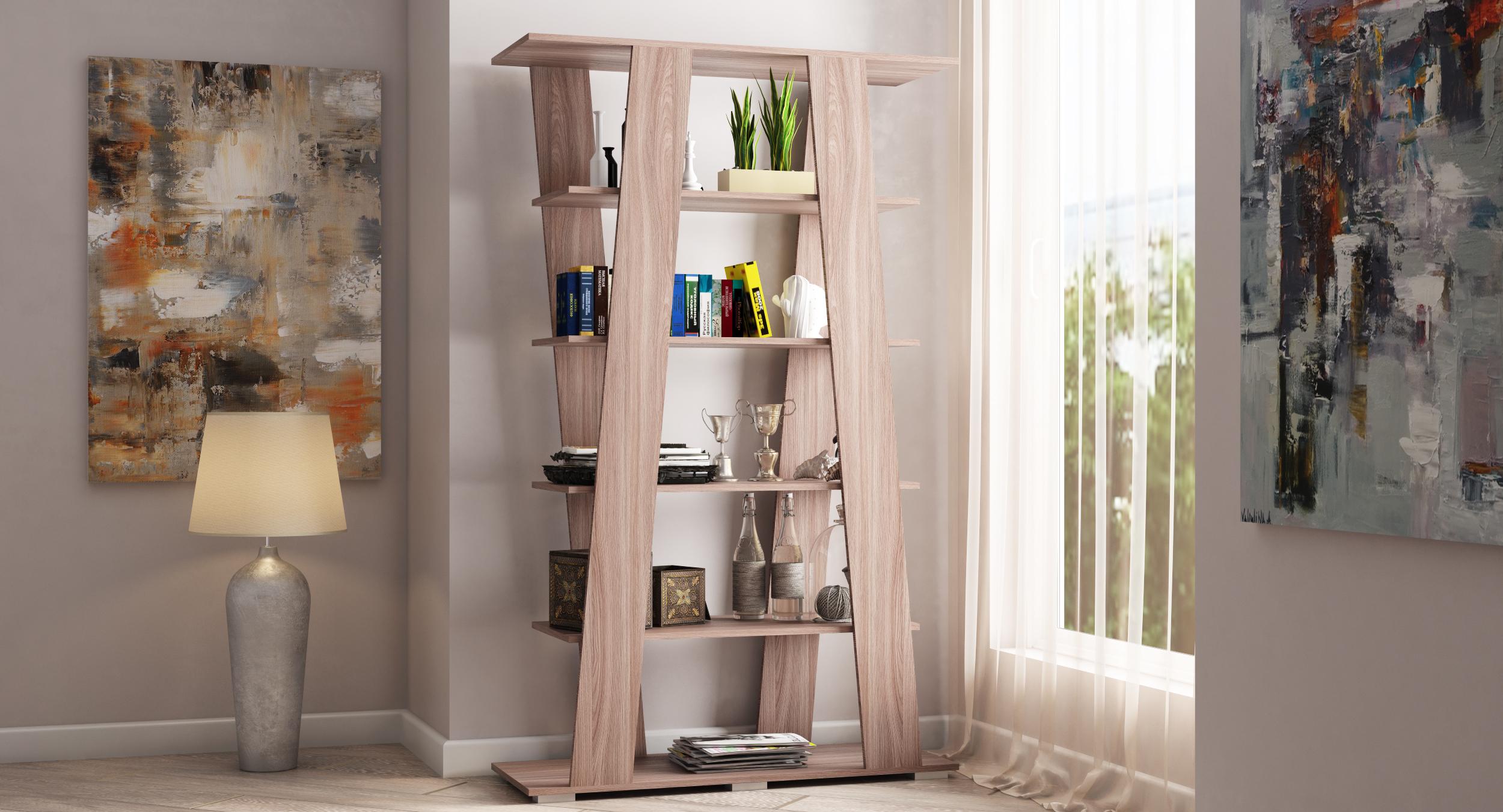 Стеллаж С-9 с открытыми полками отлично впишется в интерьер любой квартиры. На широких полочках с легкостью уместятся любимые декоративные предметы, книги и журналы, а оригинальный дизайн внесет некую изюминку в ваш дом.