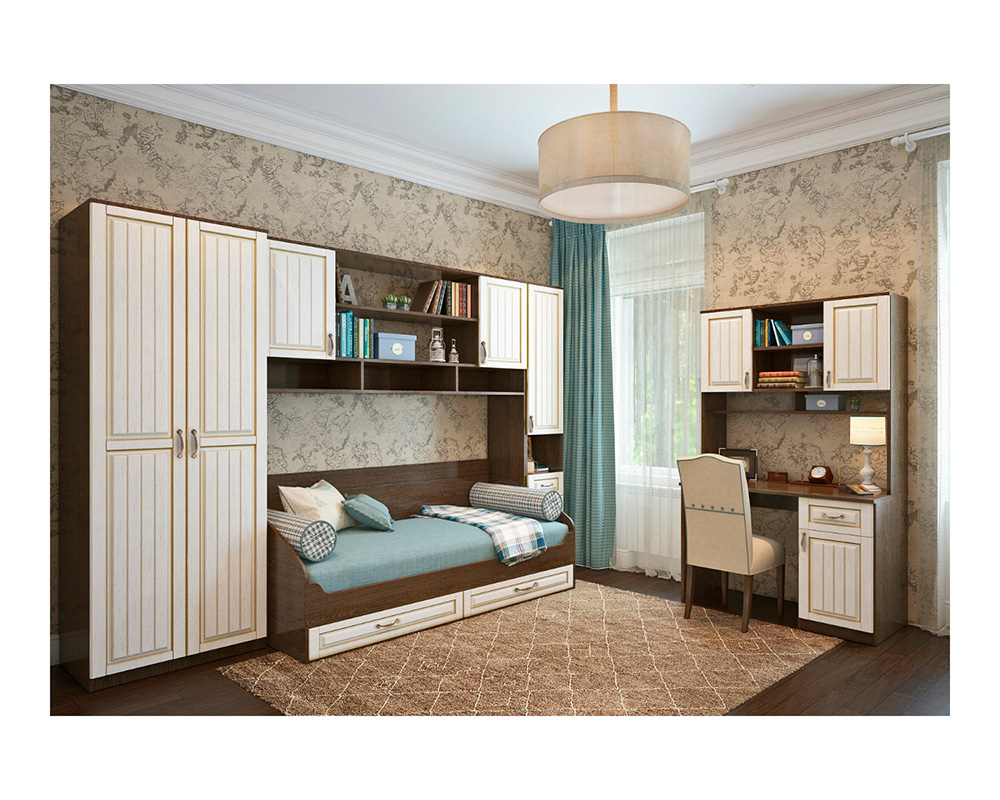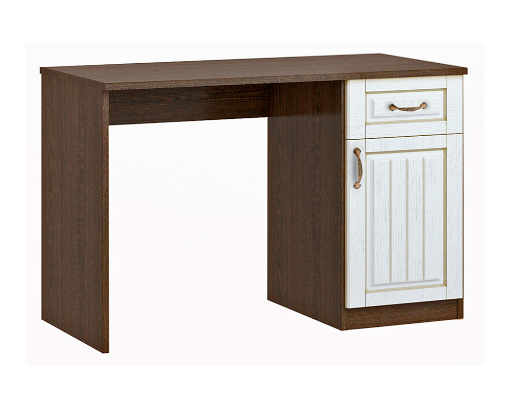 Стол «Мишель» такой же изысканный и очаровательный, как и остальная мебель серии. Фасады из фрезерованного МДФ цвета патина премиум эффектно контрастируют с благородным темным дубом. Образ дополняют изысканные винтажные ручки под латунь. Для книг и учебников есть вместительная тумба с полкой. Под канцелярские принадлежности предназначен небольшой выдвижной ящик, а на просторной столешнице поместится все, что необходимо для учебы.
