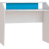 Классическую конструкцию этого письменного стола производитель дополнил невысокой надстройкой для ноутбука, стопки учебников или подставки под письменные принадлежности. Стол небольшой — 1040 мм ширины и 500 мм глубины, но за счет надстройки получился функциональным и удобным. Задняя стенка выполнена в бирюзовом цвете, эффектно контрастирующим с белой столешницей и корпусом. Стол можно купить как самостоятельный предмет интерьера или заказать в составе мебельного гарнитура «Бирюза».