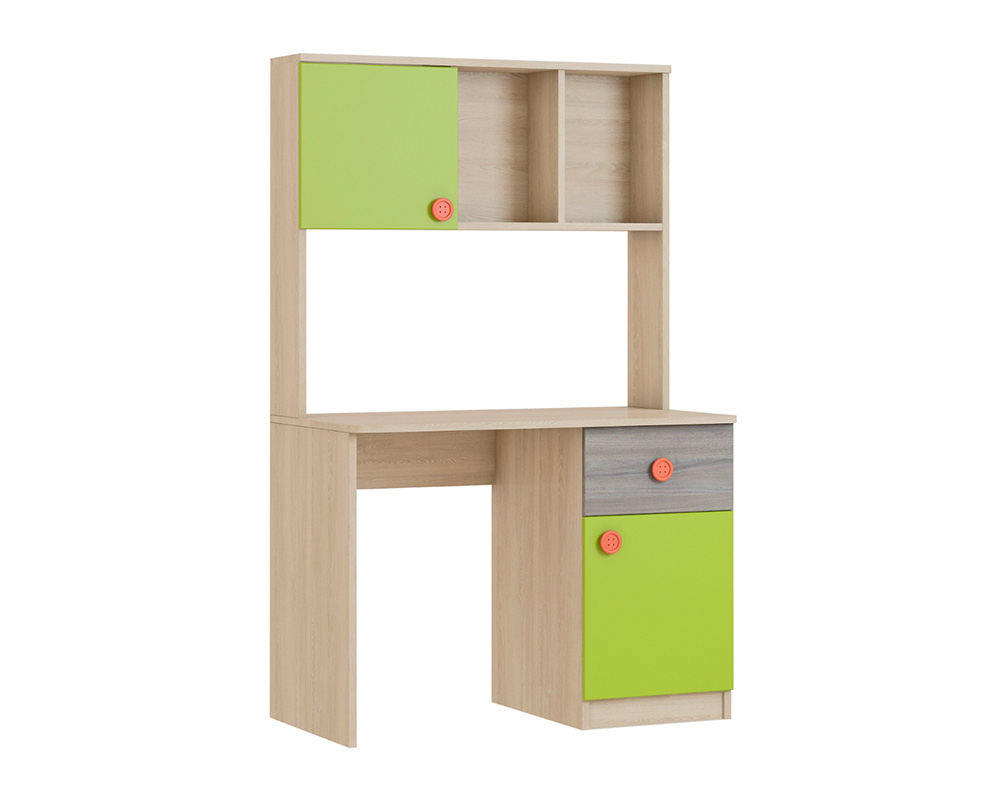 Рабочее место может быть уютным — это доказывает стол «Пуговка». В нем все направлено на создание атмосферы комфорта: цветовая гамма с интересным сочетанием оттенков, крупные удобные ручки-пуговки из мягкого силикона, вместительная надстройка с открытыми и закрытыми полками, глубокая тумба с распашной дверцей и небольшой выдвижной ящик. Надстройка и полки компенсируют небольшие размеры столешницы, а ее правильная высота позволит с первых дней учебы поддерживать здоровую осанку. Стол «Пуговка» можно купить отдельно или в составе модульного набора для детской. В любом случае, мы бесплатно доставим вашу покупку по Омску или оперативно подготовим к самовывозу со склада.