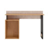 В ассортименте письменных столов нашего сайта «Стэнфорд» выделяется оригинальной конструкцией: тумба с необычным и контрастным фасадом нижнего ящика перекликается с простой формой столешницы и задней панелью цвета слейт. Благодаря тонкой опорной боковине и свободному месту под столешницей стол не кажется массивным, а контраст дуба бунратти, черного и серого цветов подчеркивает неординарный дизайн модели.