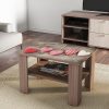 Современный журнальный столик с УФ-печатью на столешнице прекрасно подойдет для любой гостиной. Технология печати позволяет сохранить рисунок на долго. Он не выцветает и не боится влажной уборки. Данная модель имеет открытую полку, где можно хранить любимые мелочи.