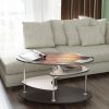 Овальный журнальный стол без острых углов. Красивый и легкий в передвижении, благодаря колесикам вместо ножек. В середине две симметричные полки для журналов, газет, пульта ТВ. Отлично разбавит ваш интерьер плавными линиями. Столешница украшена ярким УФ рисунком. Кроме того, он не привычно большой. Столешница 1000*580мм.