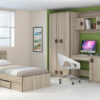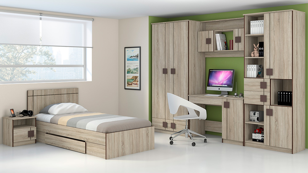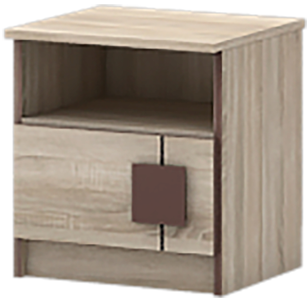 Если вам нужна небольшая тумбочка, которую удобно поставить около кровати, рассмотрите тумбу серии для детских комнат «Диско». Ее можно разместить и во взрослой спальне, и, например, в прихожей. У тумбы 2 полки: открытая и небольшая полка, скрытая за распашной дверцей. Все, что должно быть под рукой, когда вы уже готовитесь упасть в объятия Морфея, сюда поместится: настольная книга, журнал, наушники, зарядка для гаджета. Ну, а на саму тумбочку удобно поставить настольную лампу, чтобы почитать перед сном. Купить тумбу можно в светло-коричневом цвете, изготовленную из надежного и экологичного ЛДСП.