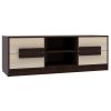 Стильная тумба под ТВ отлично подойдет под современный интерьер. Она имеет два открытых отделения под бытовую мелочь, а также четыре выдвижных ящика, в которых без труда можно поместить все необходимы вещи. Оригинальные ручки на ящиках выполнены в цвете «Венге» из пленки ПВХ.